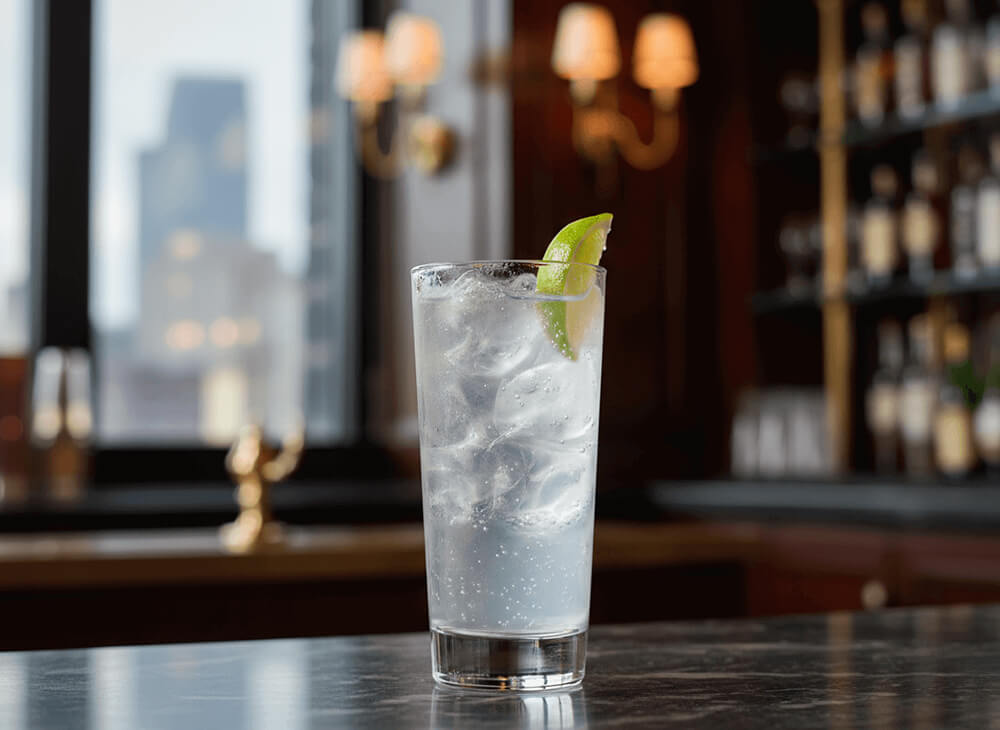 3.Add the Tonic Water: Gently pour 4 ounces of tonic water into the glass.